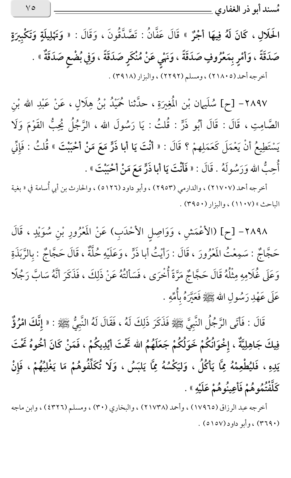٢٨٩٧ - [ح] سُلَيمان بْن المُغِيرَةِ، حدَّثنا حُمَيْدُ بْنُ هِلَالٍ، عَنْ عَبْدِ الله بْنِ الصَّامِتِ، قَالَ: قَالَ أبُو ذَرٍّ: قُلتُ: يَا رَسُولَ الله، الرَّجُلُ يُحِبُّ القَوْمَ وَلَا يَسْتَطِيعُ أنْ يَعْمَلَ كَعَمَلِهمْ؟ قَالَ: «أنْتَ يَا أبا ذَرٍّ مَعَ مَنْ أحْبَبْتَ» قُلتُ: فَإِنِّي أُحِبُّ الله وَرَسُولَهُ. قَالَ: «فَأنْتَ يَا أبا ذَرٍّ مَعَ مَنْ أحْبَبْتَ».