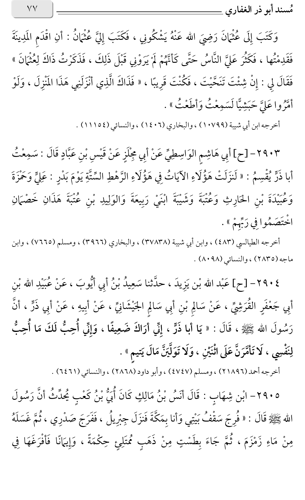 أخرجه الطيالسي (٤٨٣)، وابن أبي شيبة (٣٧٨٣٨)، والبخاري (٣٩٦٦)، ومسلم (٧٦٦٥)، وابن ماجة (٢٨٣٥)، والنسائي (٨٠٩٨).