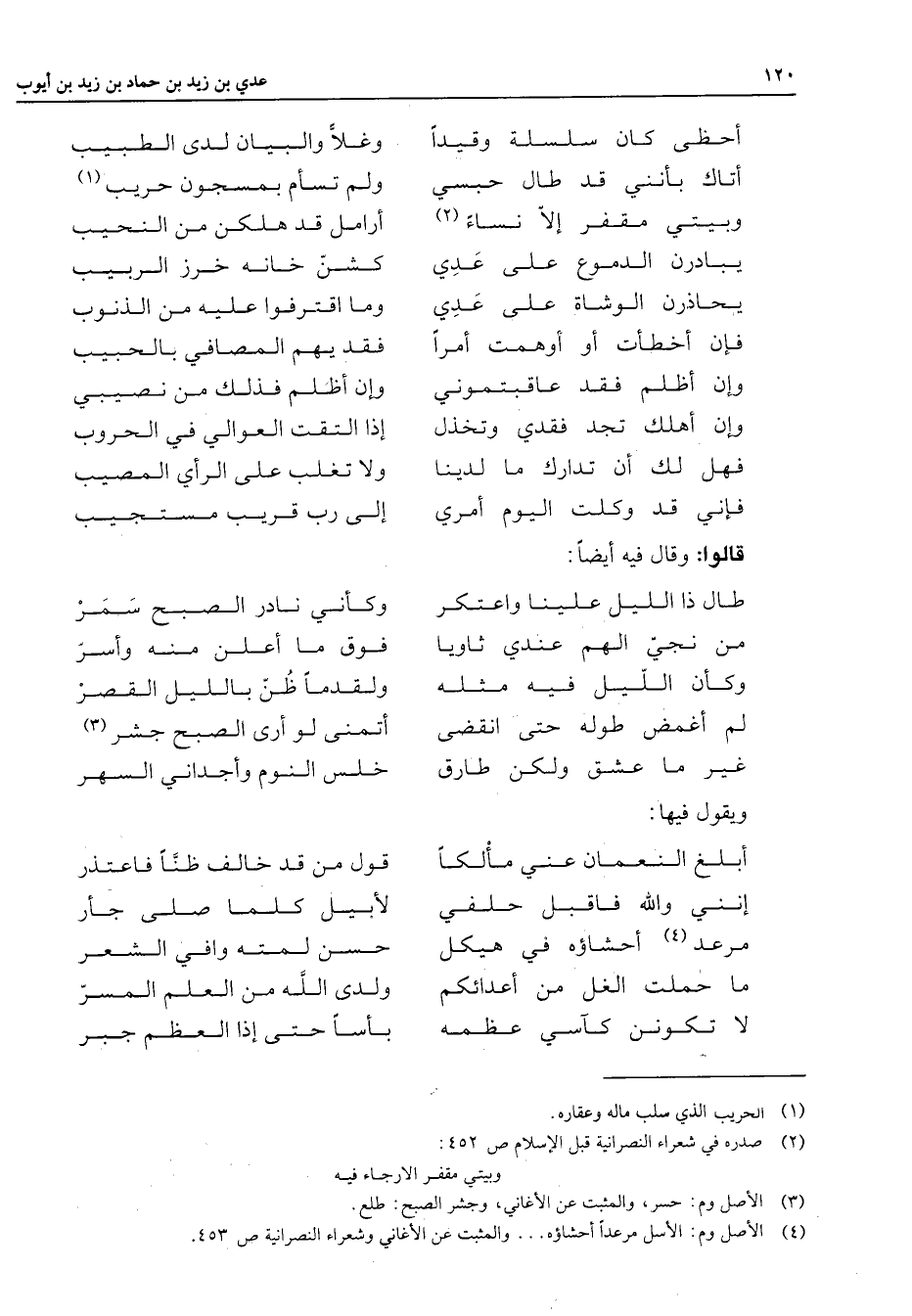 والمثبت عن الاغاني وشعراء النصرانية ص 453