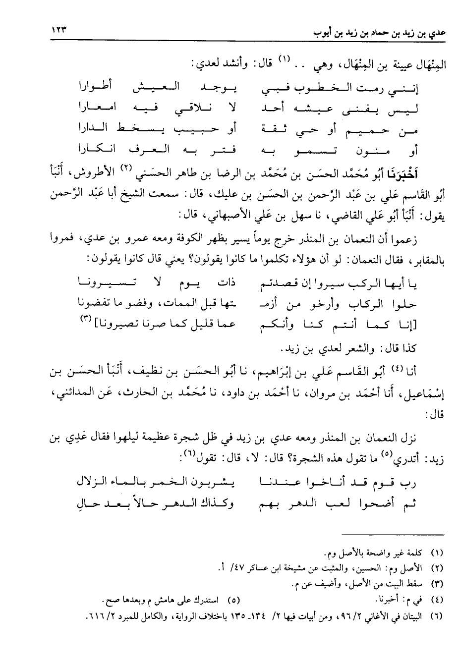 (6) البيتان في الاغاني 2 / 96، ومن أبيات فيها 2 / 134 - 135 باختلاف الرواية - والكامل للمبرد 2 / 616