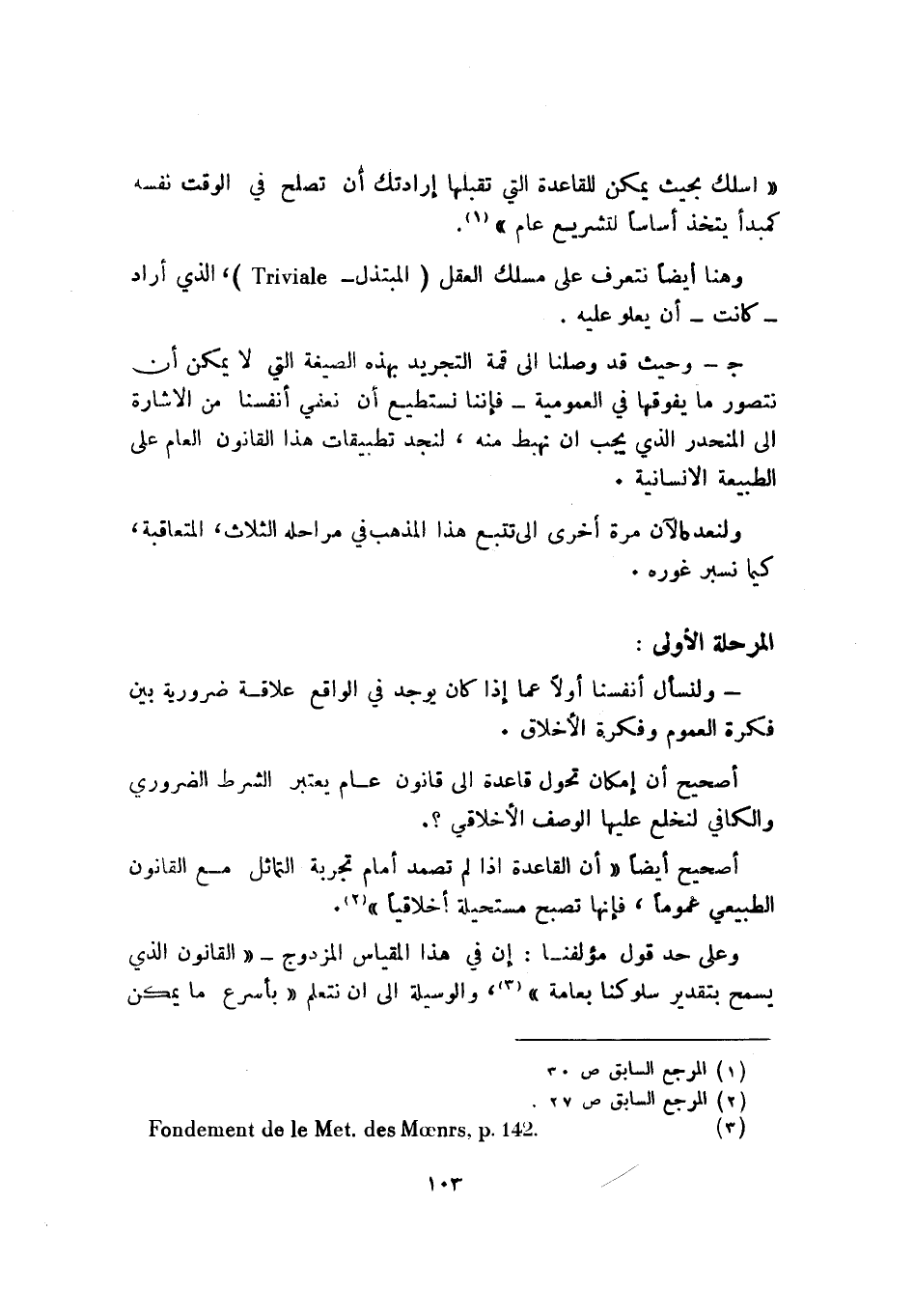 2 fondement de le met. Des moenrs, P. 142.