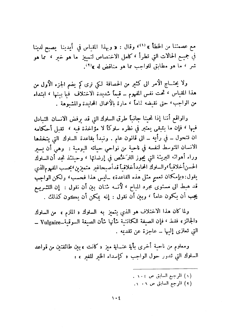ولما كان هذا الاختلاف هو الذي يتميز به السلوك "الملزم" من السلوك "الجائز" فقط، فإن الصيغة الكانتية شأنها شأن الصيغة السوقية -vulgaire- التي تعتري إليها -عاجزة عن تقديمه.