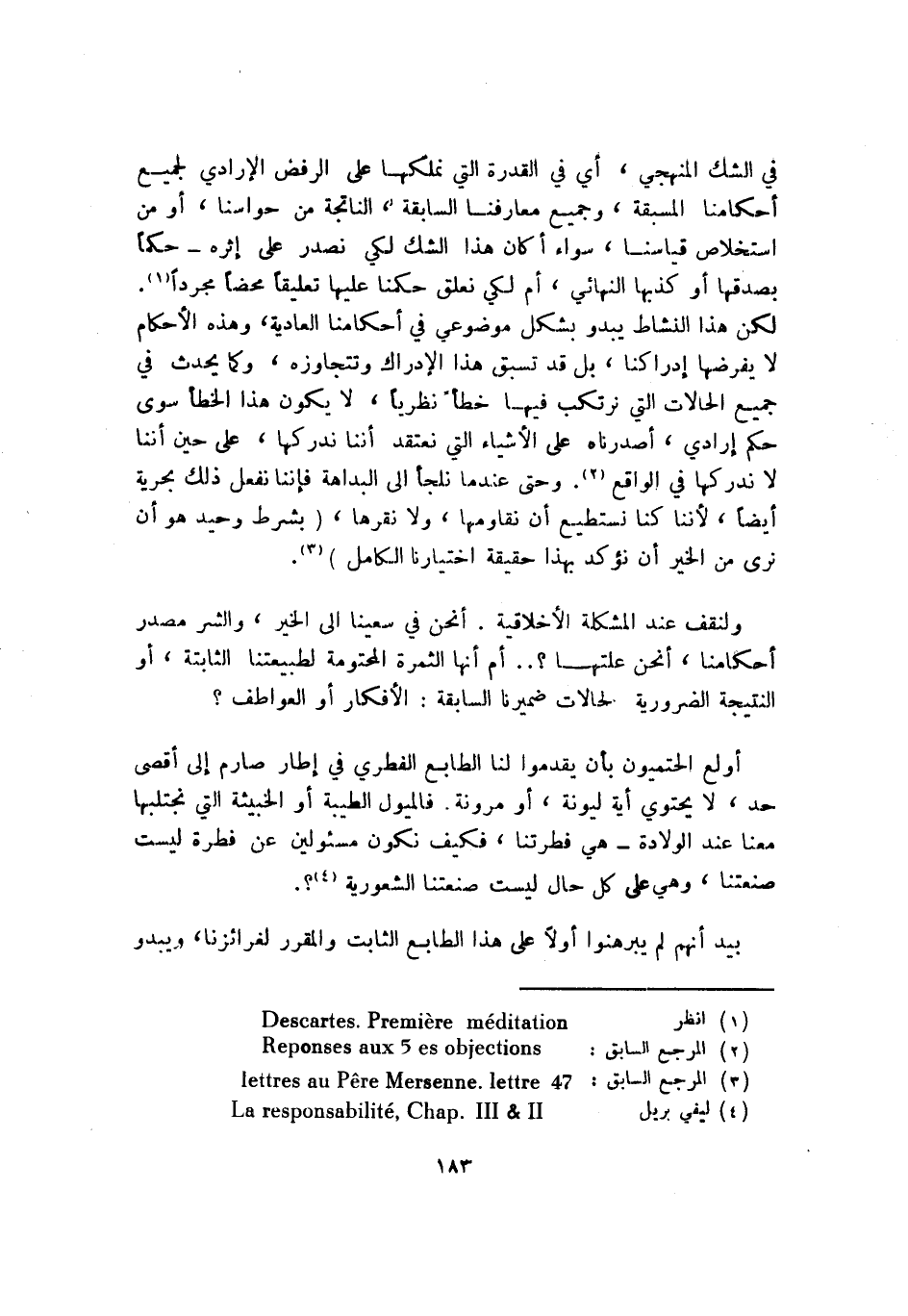 1 انظر descartes. Premiere meditation