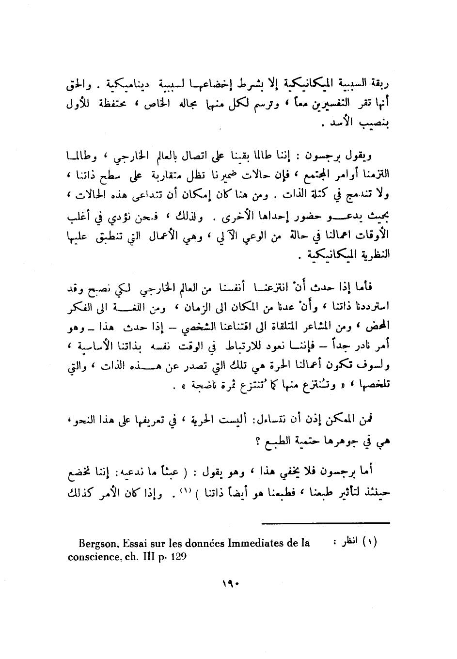1 انظر: Bergson, Essai Sur Les donnees Immediates de la conscience. Ch. III p. 129.