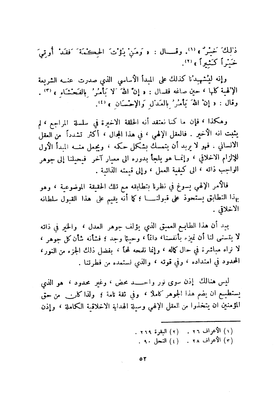 وإنه ليشهدنا كذلك على المبدأ الأساسي الذي صدرت عنه الشريعة الإلهية كلها، حين صاغه فقال: {إِنَّ اللَّهَ لا يَأْمُرُ بِالْفَحْشَاءِ} 3.