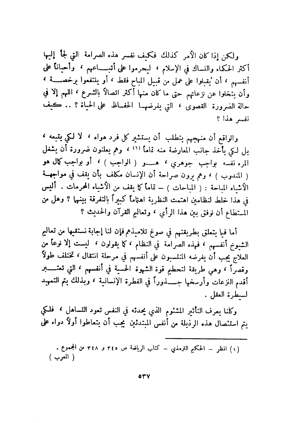 1 انظر الحكيم الترمذي, كتاب الرياضة, ص345 و348 من المجموع. "المعرب".
