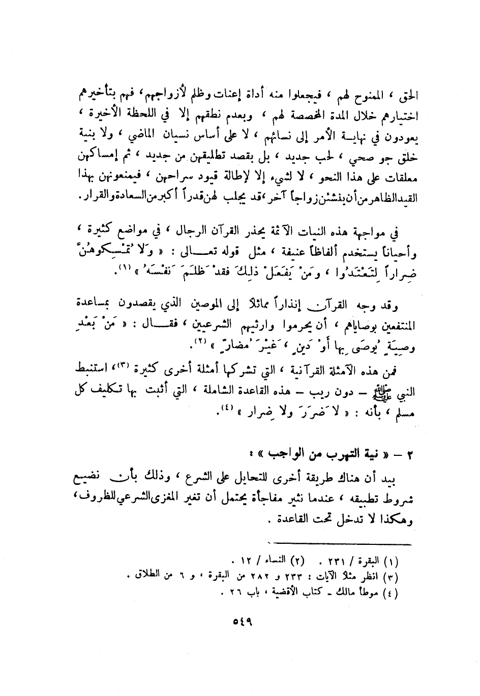 فمن هذه الأمثلة القرآنية، التي تشركها أمثلة أخرى كثيرة3، استنبط النبي, صلى الله عليه وسلم -دون ريب- هذه القاعدة الشاملة، التي أثبت بها تكليف كل مسلم، بأنه: "لا ضرر ولا ضرار" 4.