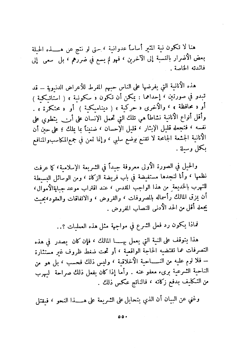 والحيل في الصورة الأولى معروفة جيدًا في الشريعة الإسلامية، كما عرفت نظمها، وإنا لنجدها مستفيضة في باب فريضة الزكاة، ومن الوسائل البسيطة للتهرب بالخديعة من هذا الواجب المقدس، عند اقتراب موعد جباية الأموال، أن يمزق المالك رأس ماله بالمصروفات، والقروض، والاتفاقات والعقود، بحيث يجعله أقل من الحد الأدنى للنصاب المفروض.