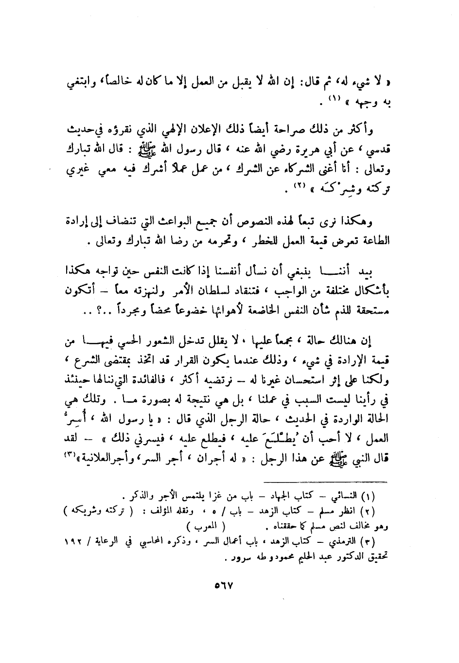3 الترمذي, كتاب الزهد، باب أعمال السر، وذكره المحاسبي في الرعاية 192, تحقيق الدكتور عبد الحليم محمود وطه سرور.