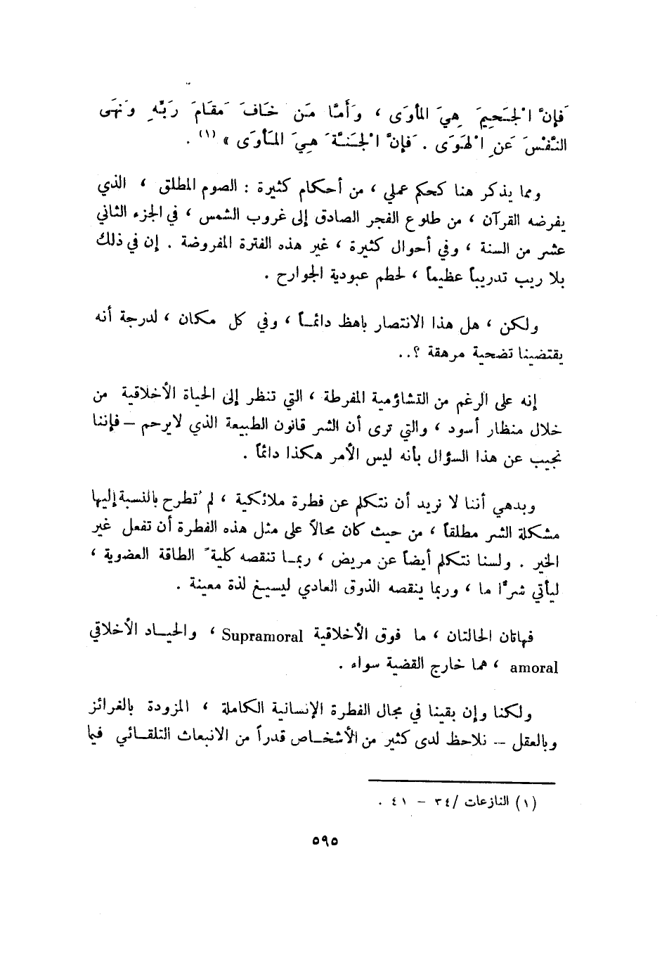فهاتان الحالتان، ما فوق الأخلاقية SUPRAMORAL، والحياد الأخلاقي AMORAL، هما خارج القضية سواء.