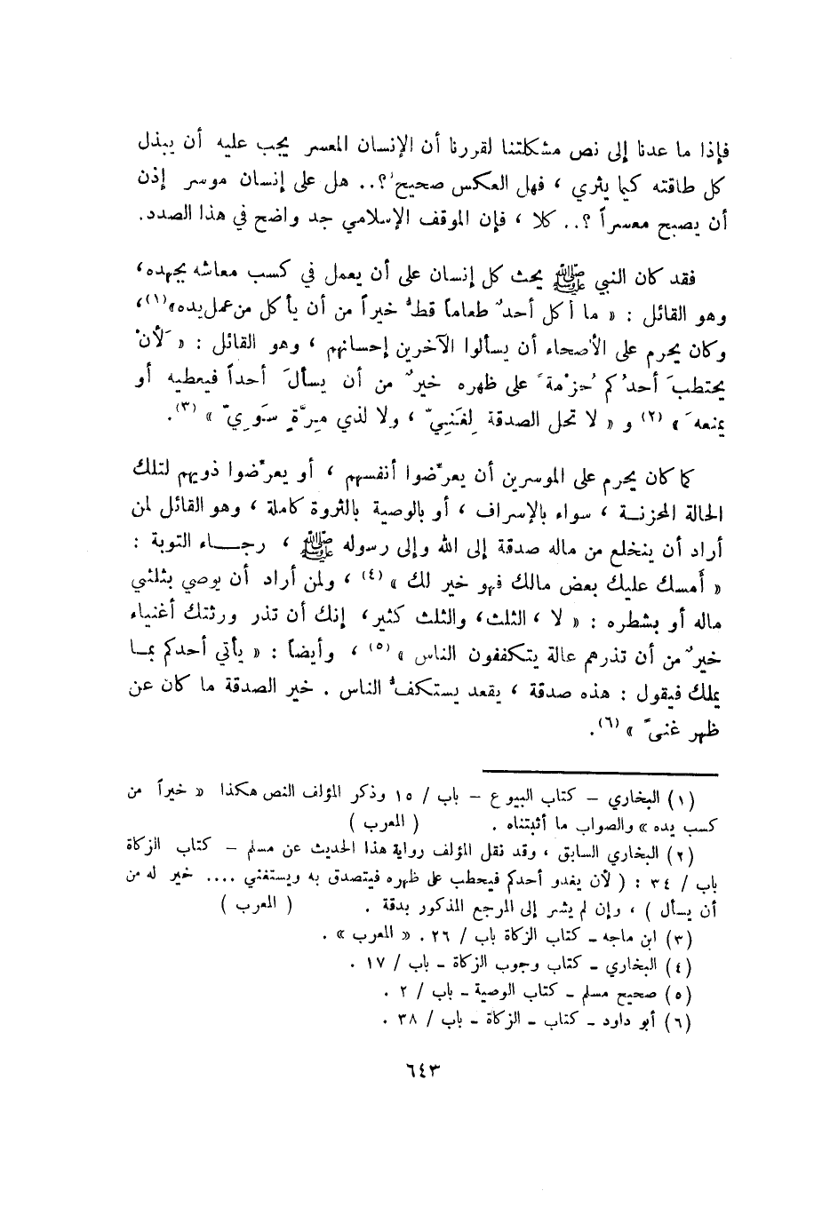 2 البخاري السابق، وقد نقل المؤلف رواية هذا الحديث عن مسلم, كتاب الزكاة, باب 34: "لأن يغدو أحدكم فيحطب على ظهره فيتصدق به ويستغني ... خير له من أن يسأل". وإن لم يشر إلى المرجع المذكور بدقة. "المعرب".