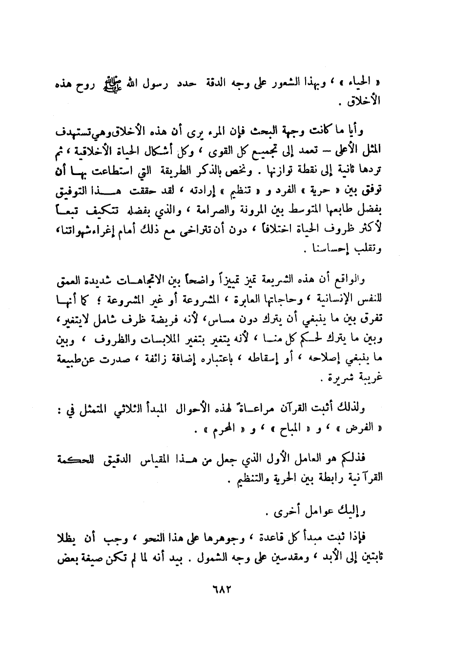 فذلكم هو العامل الأول الذي جعل من هذا المقياس الدقيق للحكمة القرآنية رابطة بين الحرية والتنظيم.