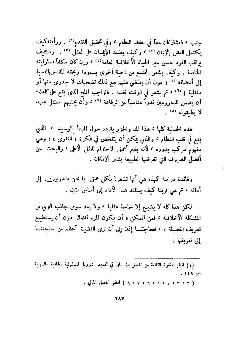 1 انظر الفقرة الثانية من الفصل الثاني في تحديد شروط المسئولية الخلقية والدينية ص148.