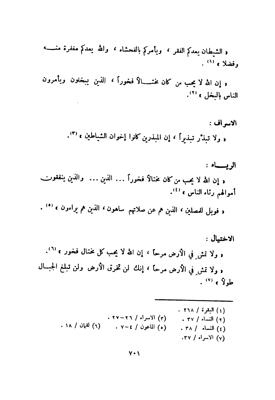 {إِنَّ اللَّهَ لا يُحِبُّ مَنْ كَانَ مُخْتَالًا فَخُورًا.... الَّذِينَ.... وَالَّذِينَ يُنْفِقُونَ أَمْوَالَهُمْ رِئَاءَ النَّاسِ} 4.