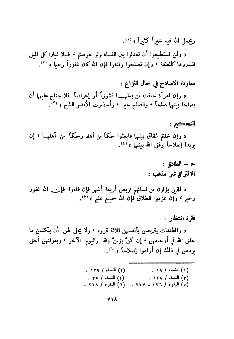 {وَلَنْ تَسْتَطِيعُوا أَنْ تَعْدِلُوا بَيْنَ النِّسَاءِ وَلَوْ حَرَصْتُمْ فَلا تَمِيلُوا كُلَّ الْمَيْلِ فَتَذَرُوهَا كَالْمُعَلَّقَةِ وَإِنْ تُصْلِحُوا وَتَتَّقُوا فَإِنَّ اللَّهَ كَانَ غَفُورًا رَحِيمًا} 2.