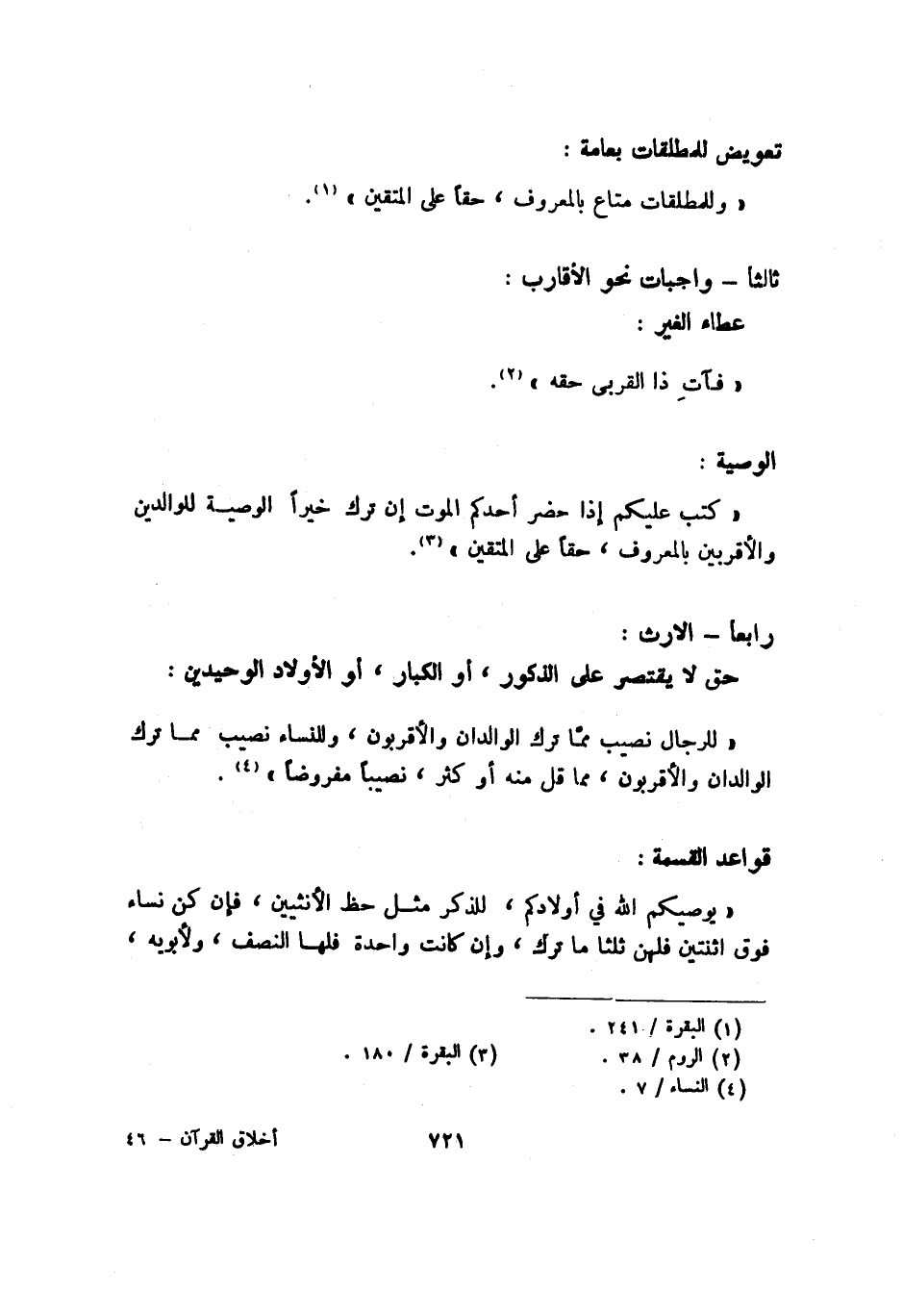 {لِلرِّجَالِ نَصِيبٌ مِمَّا تَرَكَ الْوَالِدَانِ وَالْأَقْرَبُونَ وَلِلنِّسَاءِ نَصِيبٌ مِمَّا تَرَكَ الْوَالِدَانِ وَالْأَقْرَبُونَ مِمَّا قَلَّ مِنْهُ أَوْ كَثُرَ نَصِيبًا مَفْرُوضًا} 1.