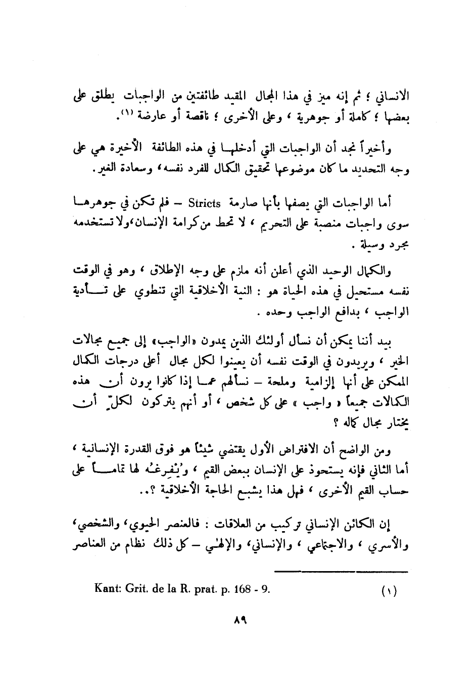 أما الواجبات التي يصفها بأنها صارمة STRICTS -فلم تكن في جوهرها سوى واجبات منصبة على التحريم، لا تحط من كرامة الإنسان، ولا تستخدمه مجرد وسيلة.
