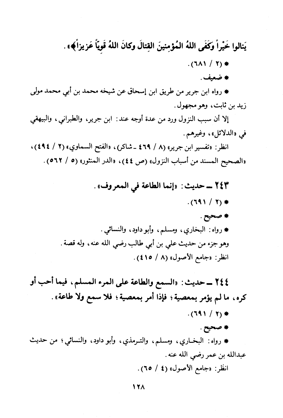 243 - حديث: ((إنما الطاعة في المعروف)) .