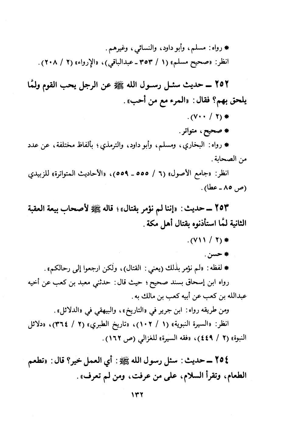 252 - حديث سئل رسول الله صلى الله عليه وسلم عن الرجل يحب القوم ولمَّا يلحق بهم؟ فقال: ((المرء مع من أحب)) .