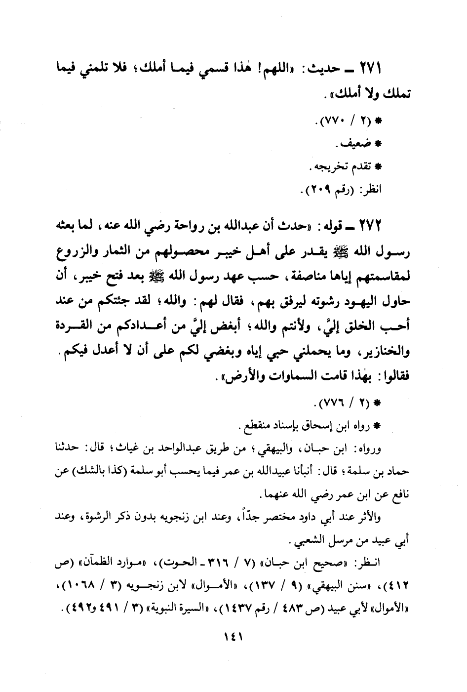 271 - حديث: اللهم! هذا قسمي فيما أملك؛ فلا تلمني فيما تملك ولا أملك)) .