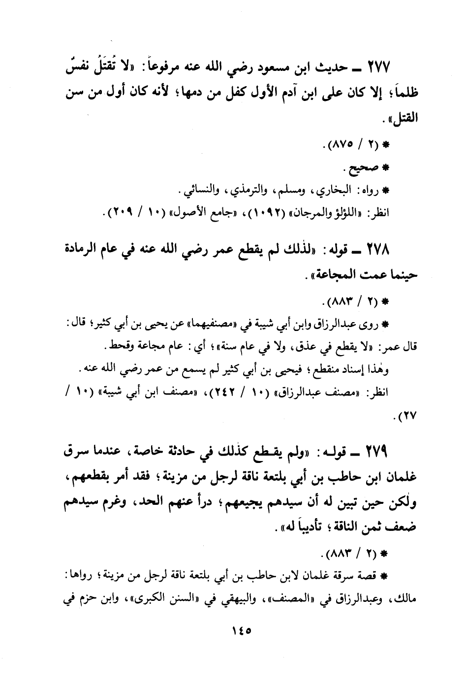 278 - قوله: ((لذلك لم يقطع عمر رضي الله عنه في عام الرمادة حينما عمت المجاعة)) .
