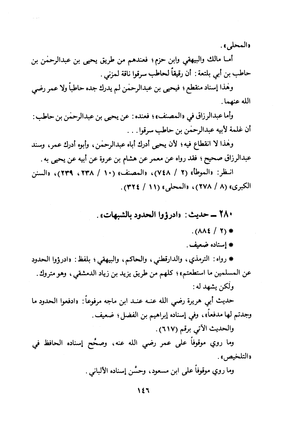 280 - حديث: ((ادرؤوا الحدود بالشبهات)) .