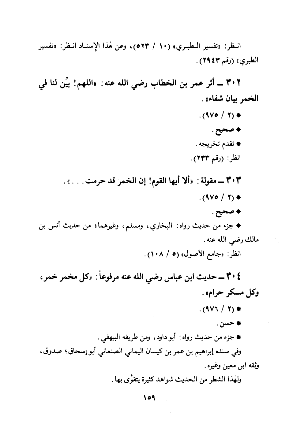 302 - أثر عمر بن الخطاب رضي الله عنه: ((اللهم! بيِّن لنا في الخمر بيان شفاء)) .