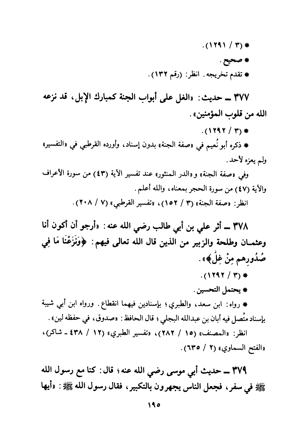 378 - أثر علي بن أبي طالب رضي الله عنه: ((أرجو أن أكون أنا وعثمان وطلحة والزبير من الذين قال الله تعالى فيهم: {وَنَزَعْنَا مَا فِي صُدُورِهِم مِّنْ غِلٍّ} )) .