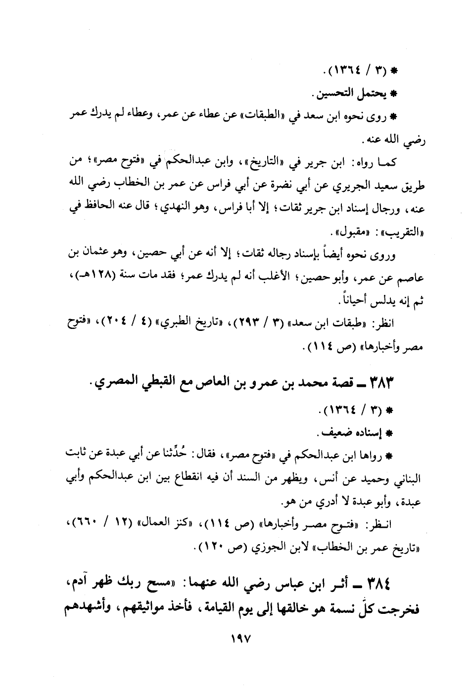 كما رواه: ابن جرير في ((التاريخ)) ، وابن عبد الحكم في ((فتوح مصر)) ؛ من طريق سعيد الجريري عن أبي نضرة عن أبي فراس عن عمر بن الخطاب رضي الله عنه، ورجال إسناد ابن جرير ثقات؛ إلا أبا فراس، وهو النهدي؛ قال عنه الحافظ في ((التقريب)) : ((مقبول)) .