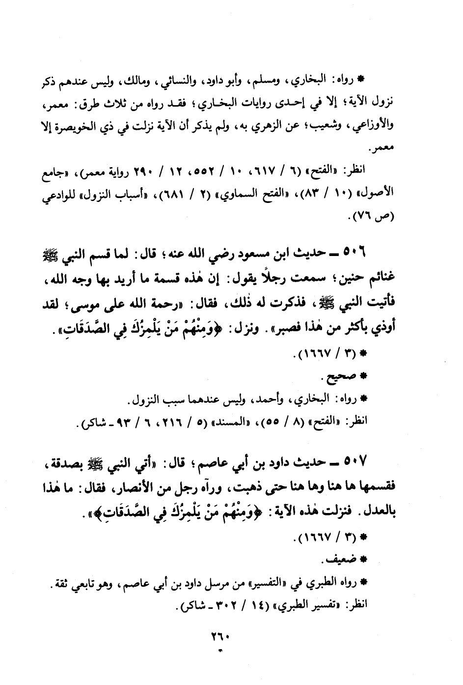 507 - حديث داود بن أبي عاصم؛ قال: ((أتى النبي صلى الله عليه وسلم بصدقة، فقسمها ها هنا وها هنا حتى ذهبت، ورآه رجل من الأنصار، فقال: ما هذا بالعدل. فنزلت هذه الآية: {وَمِنْهُمْ مَنْ يَلْمِزُكَ فِي الصَّدَقَاتِ} )) .