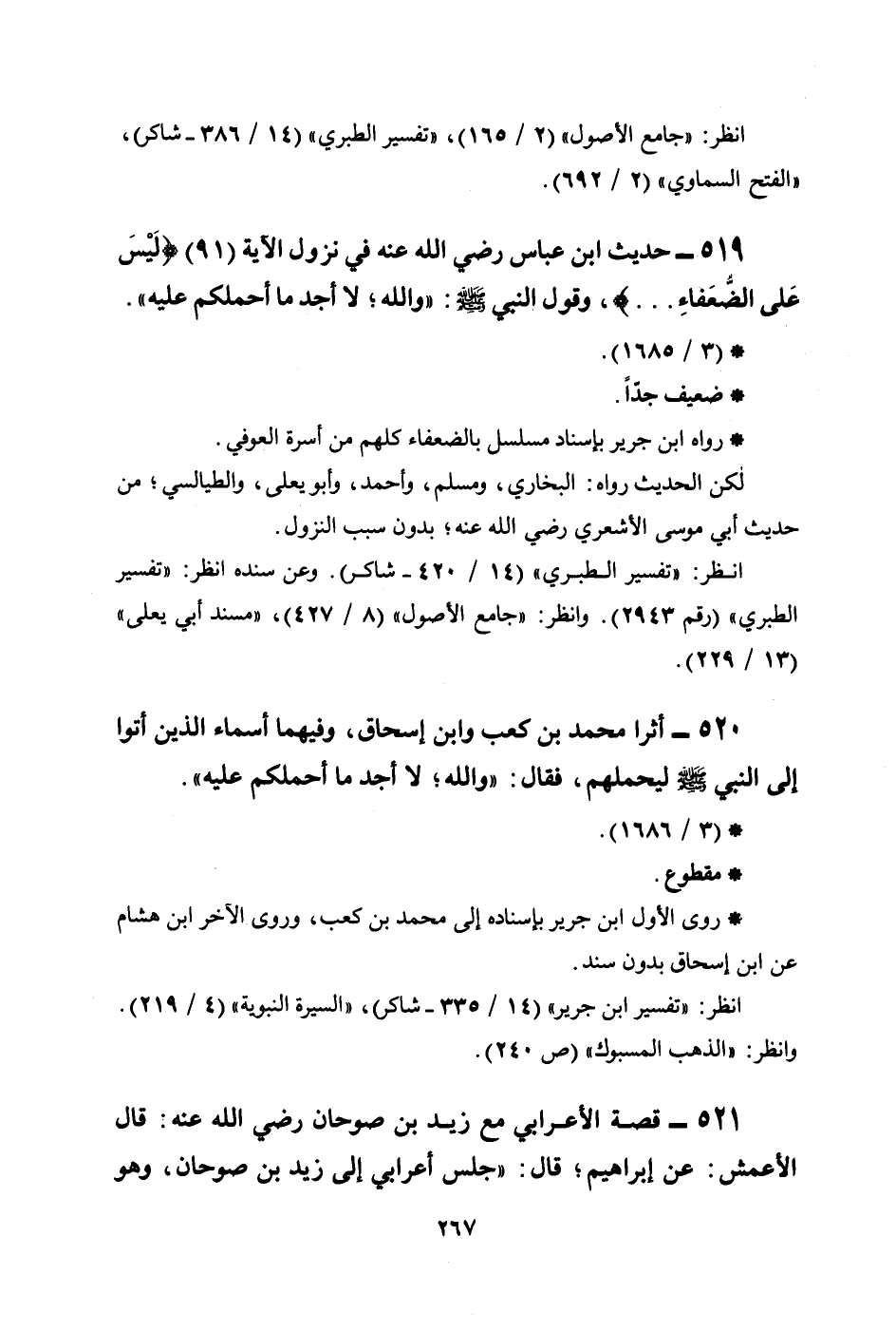 519 - حديث ابن عباس رضي الله عنهما في نزول الآية (91) {لَيْسَ عَلَى الضُّعَفَاءِ ... } ، وقول النبي صلى الله عليه وسلم: ((والله؛ لا أجد ما أحملكم عليه)) .