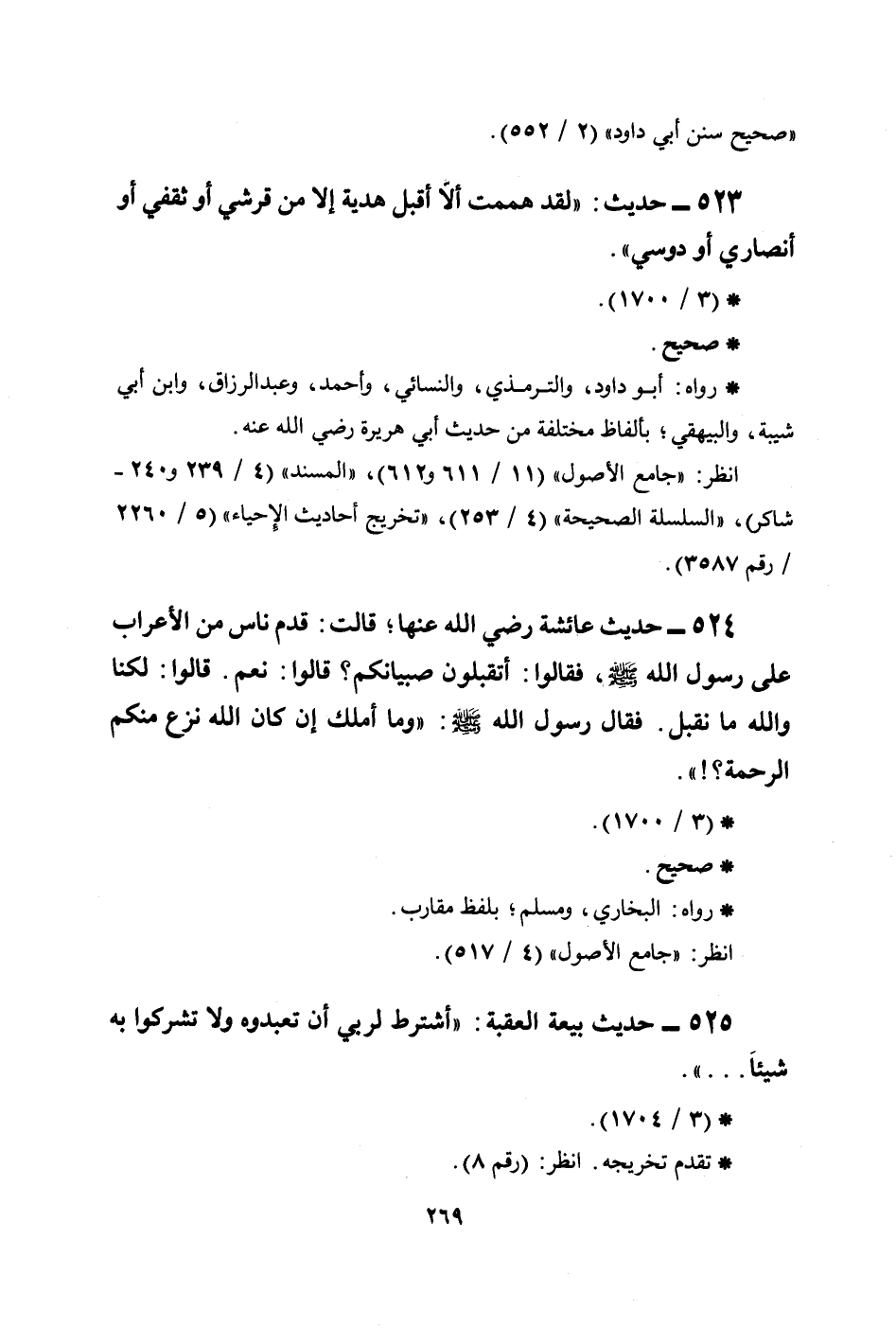 523 - حديث: ((لقد هممت ألا أقبل هدية إلا من قرشي أو ثقفي أو أنصاري أو دوسي)) .