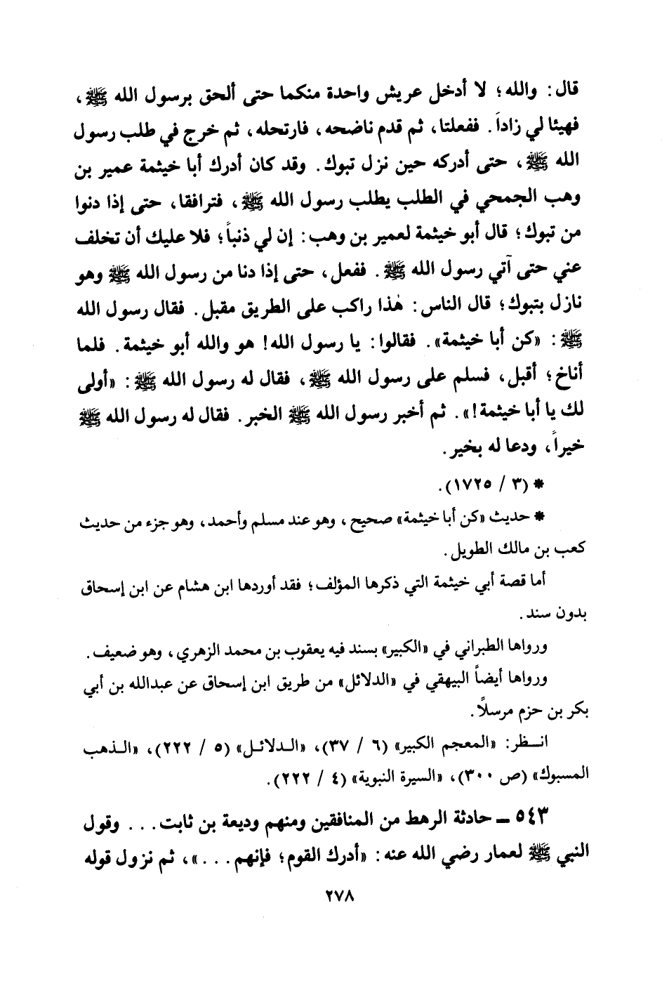أما قصة أبي خيثمة التي ذكرها المؤلف؛ فقد أوردها ابن هشام عن ابن إسحاق بدون سند.