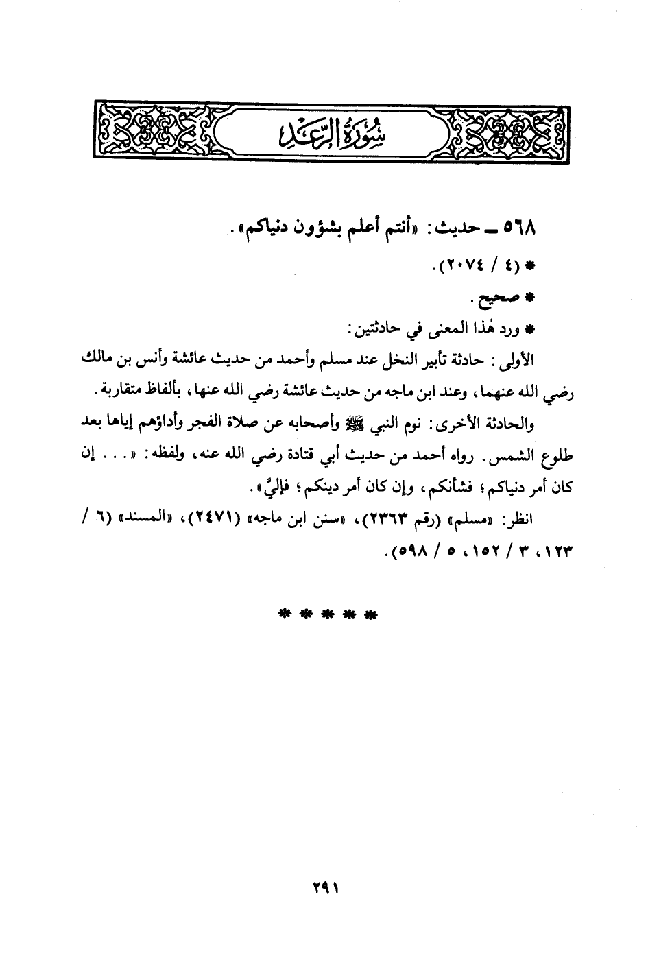 568 - حديث: ((أنتم أعلم بشؤون دنياكم)) .