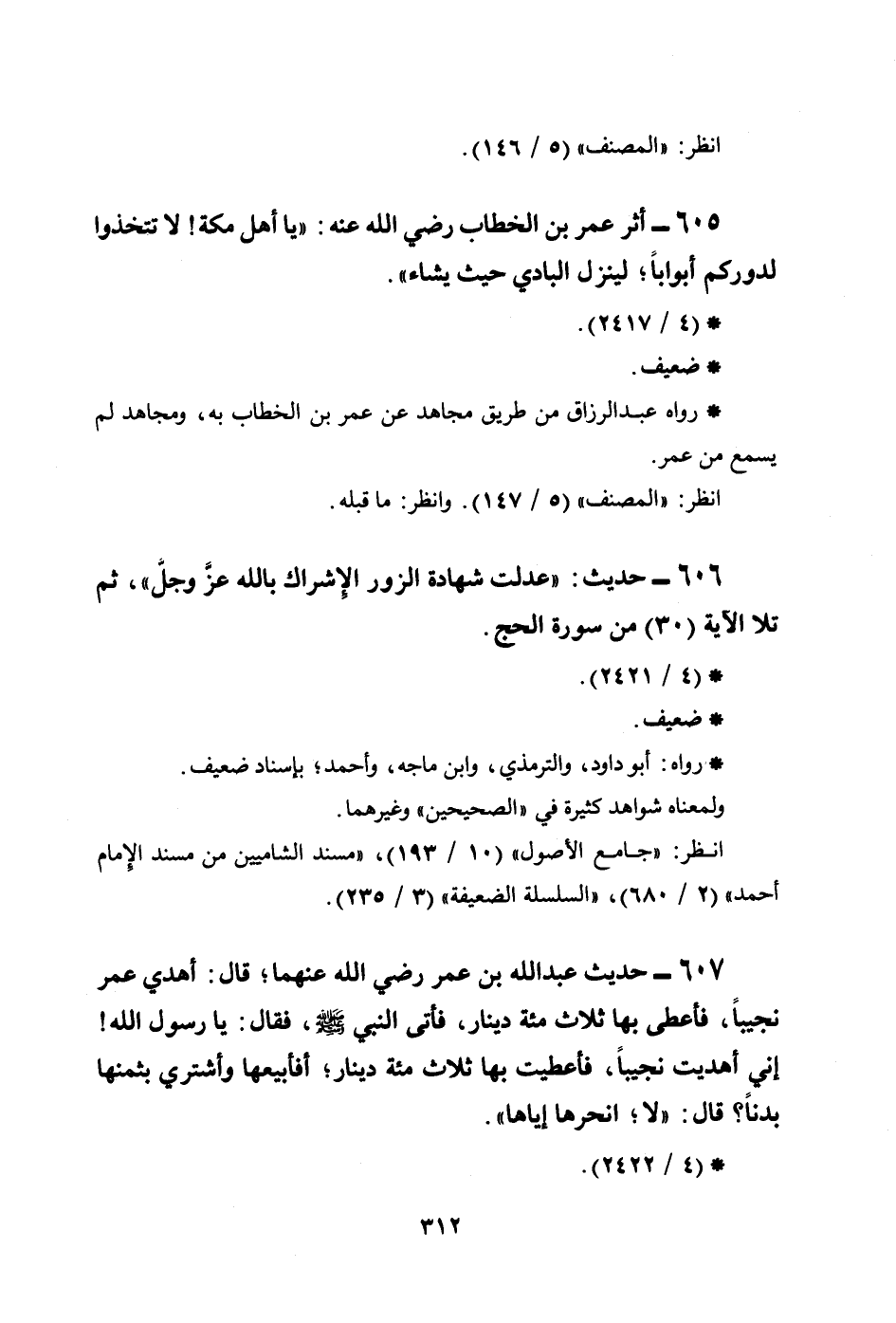 606 - حديث: ((عدلت شهادة الزور الإشراك بالله عزَّ وجلَّ)) ، ثم تلا الآية (30) من سورة الحج.
