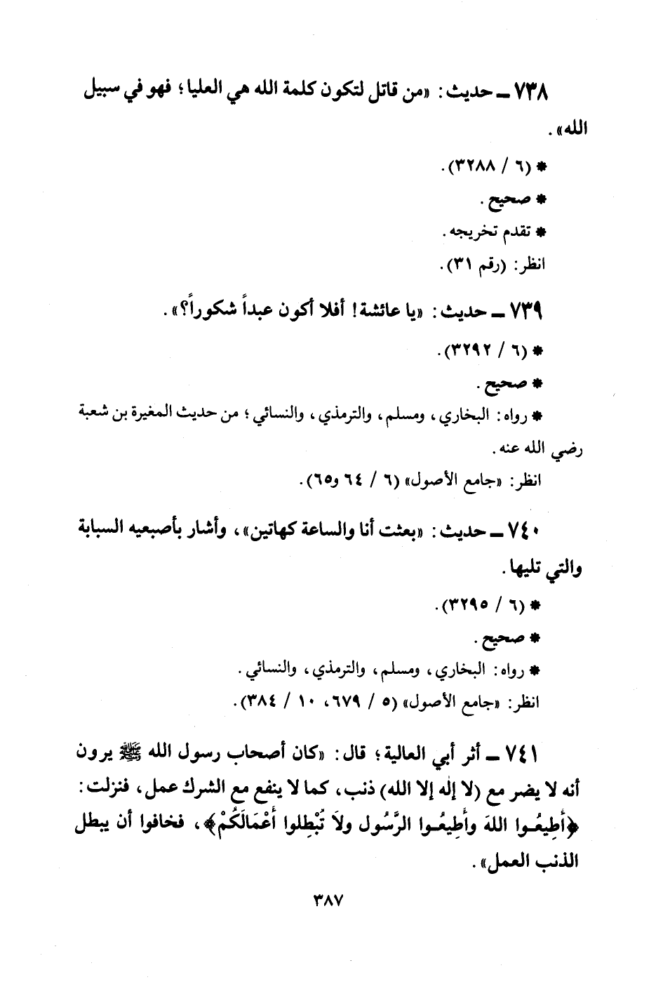 738 - حديث: ((من قاتل لتكون كلمة الله هي العليا؛ فهو في سبيل الله)) .