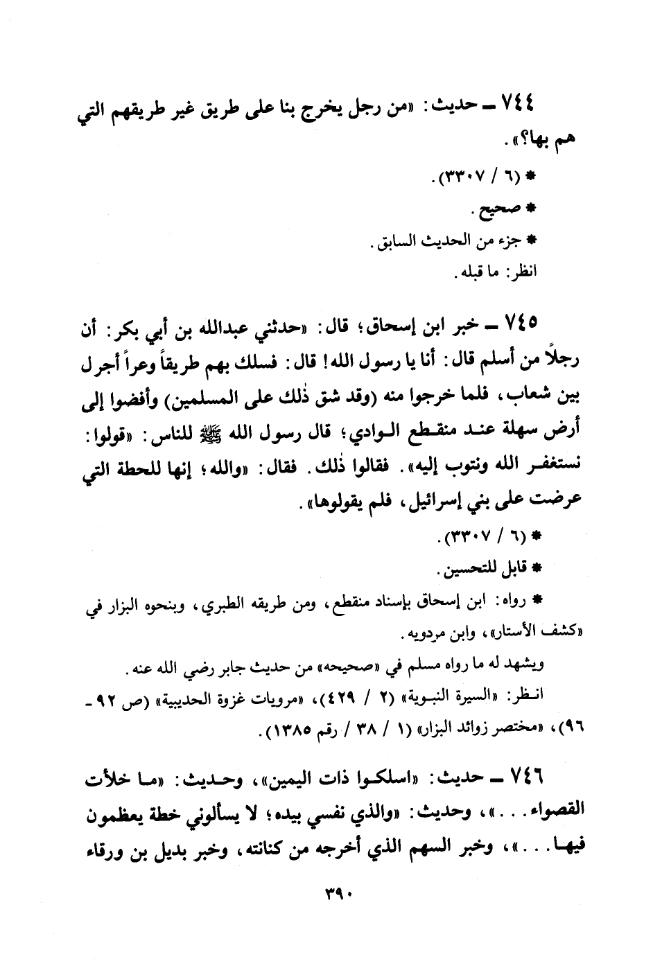 746 - حديث: ((اسلكوا ذات اليمين)) ، وحديث: ((ما خلأت القصواء ... )) ، وحديث: ((والذي نفسي بيده؛ لا يسألوني خطة يعظمون فيها ... )) ، وخبر السهم الذي أخرجه من كنانته، وخبر بديل بن ورقاء