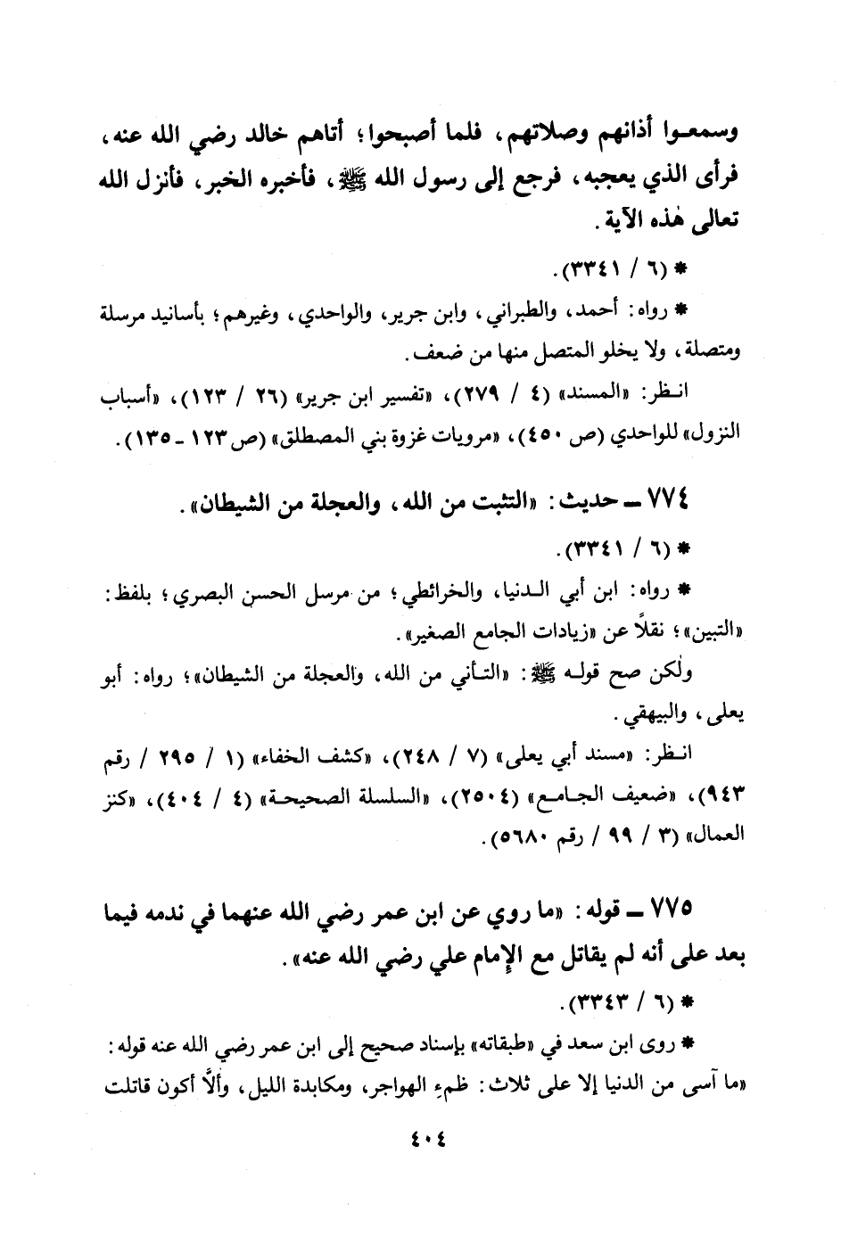 - رواه: ابن أبي الدنيا، والخرائطي؛ من مرسل الحسن البصري؛ بلفظ: ((التبين)) ؛ نقلاً عن ((زيادات الجامع الصغير)) .