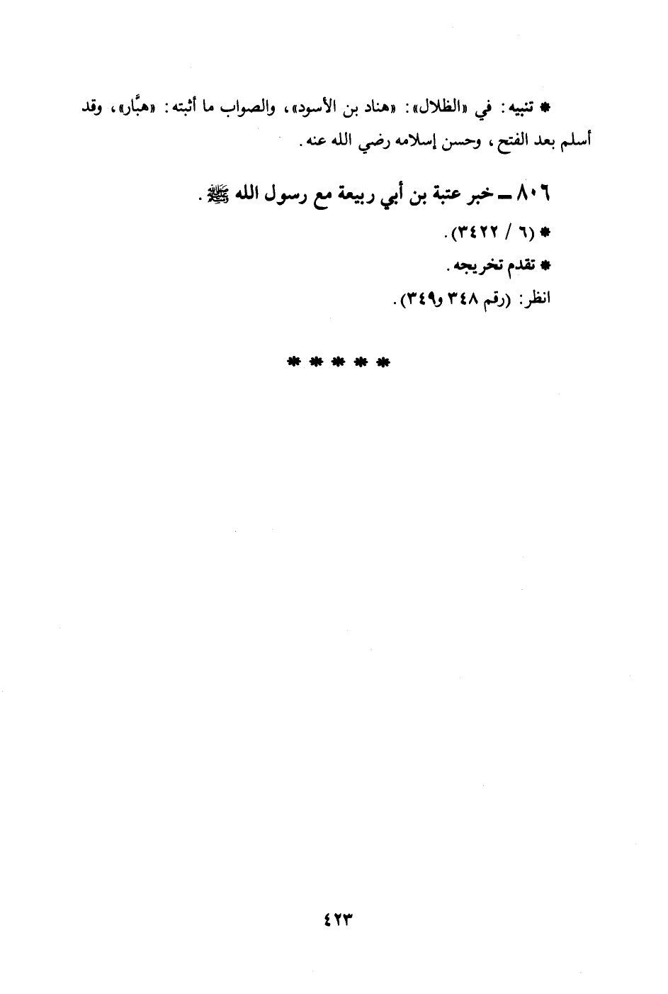 806 - خبر عتبة بن أبي ربيعة مع رسول الله صلى الله عليه وسلم.