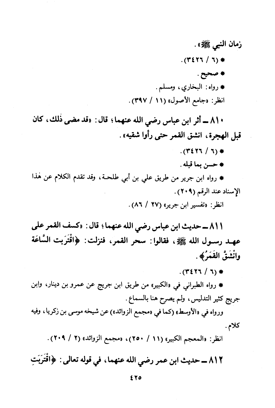 810 - أثر ابن عباس رضي الله عنهما؛ قال: ((قد مضى ذلك، كان قبل الهجرة، انشق القمر حتى رأوا شقيه)) .