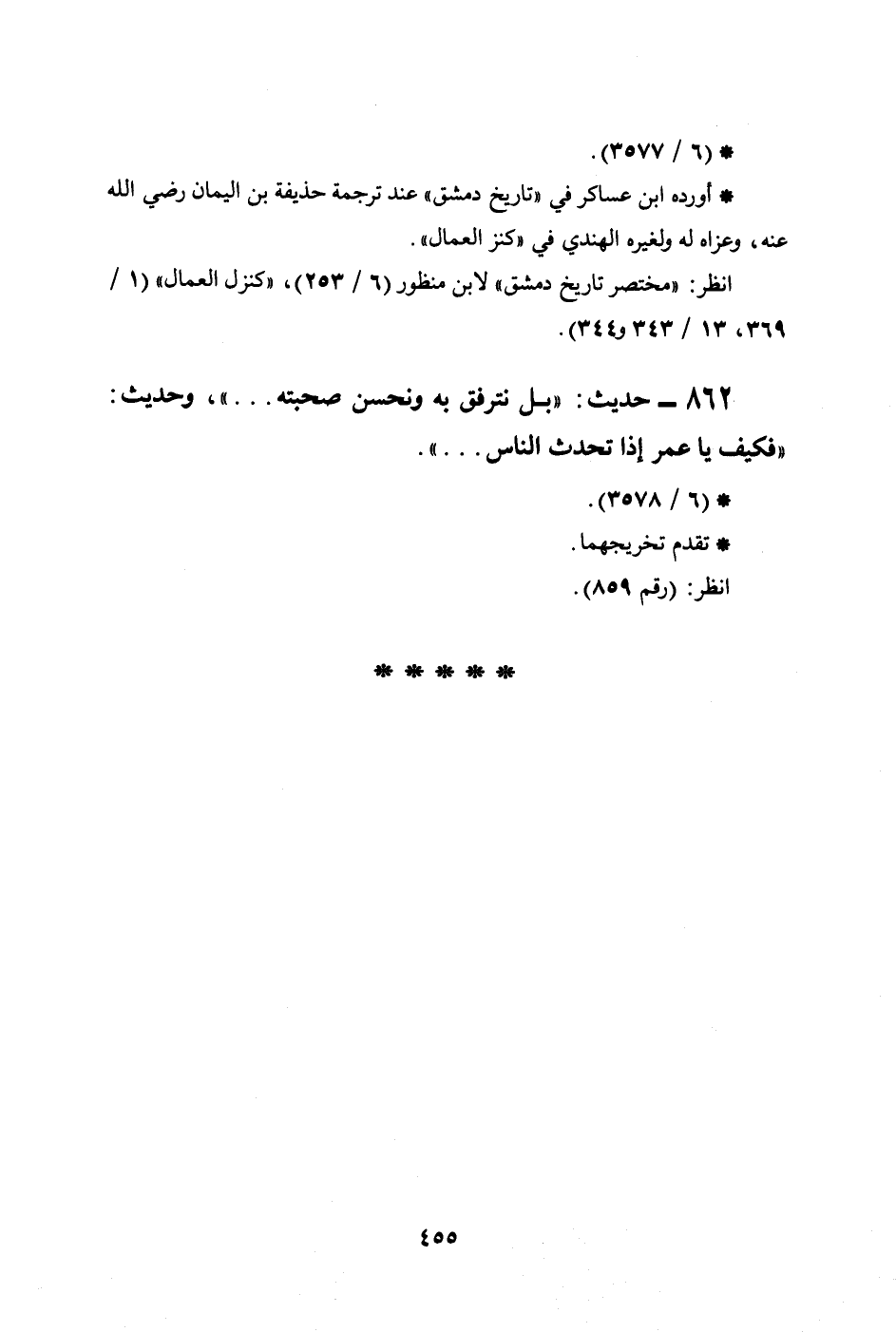 862 - حديث: ((بل نترفق به ونحسن صحبته ... )) ، وحديث: ((فكيف يا عمر إذا تحدث الناس ... )) .