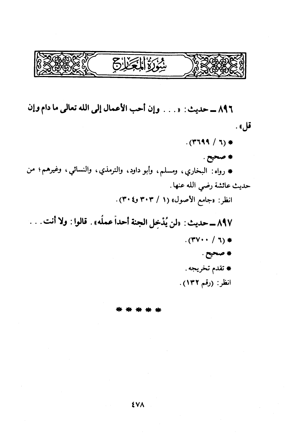 896 - حديث: (( ... وإن أحب الأعمال إلى الله تعالى ما دام وإن قل)) .