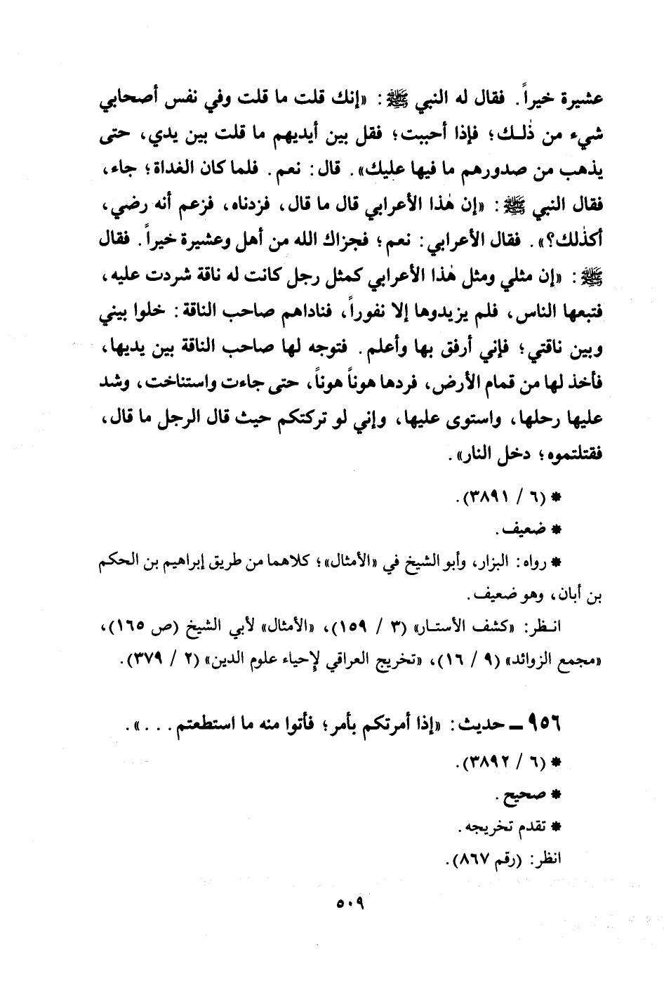 956 - حديث: ((إذا أمرتكم بأمر؛ فأتوا منه ما استطعتم ... )) .