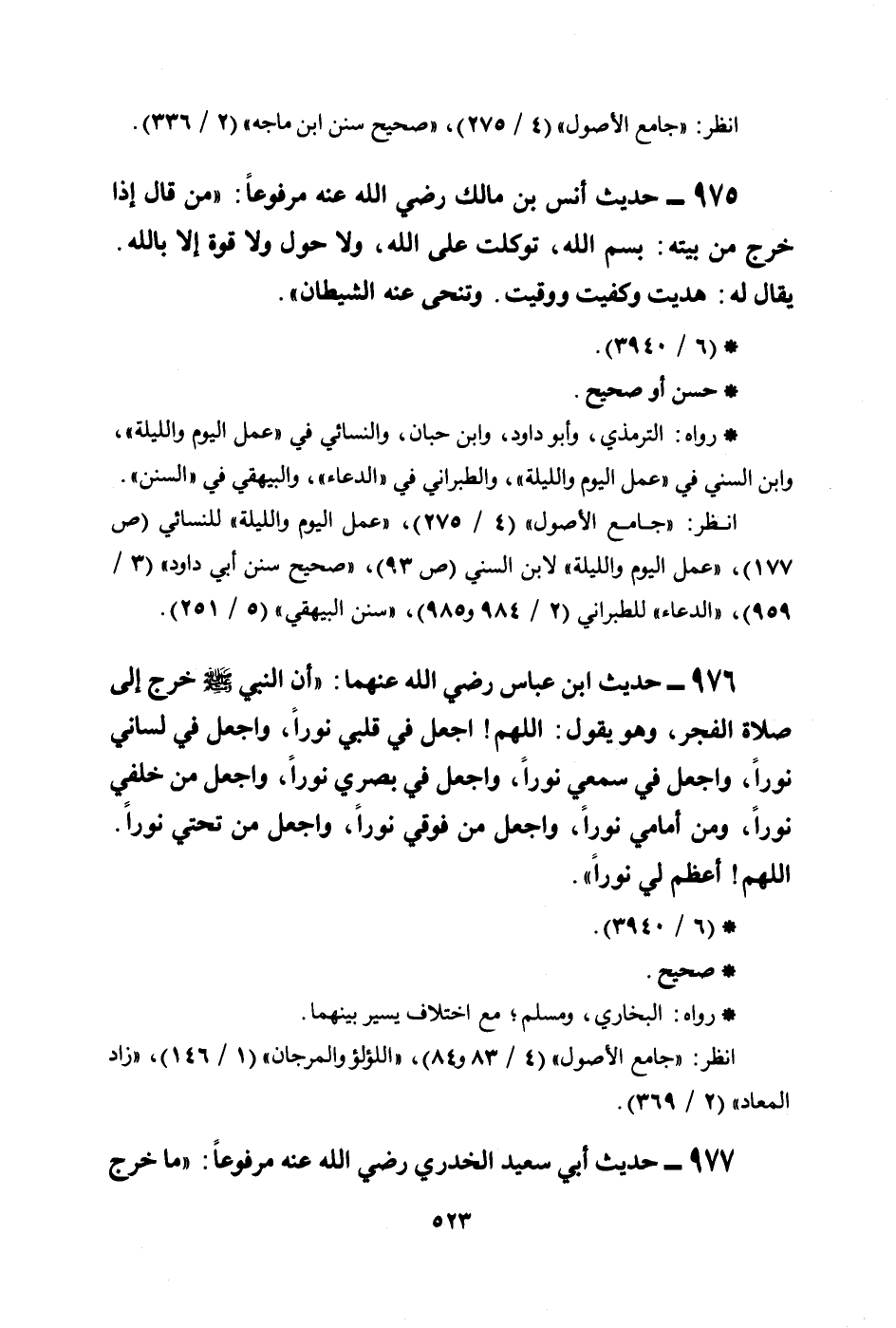 975 - حديث أنس بن مالك رضي الله عنه مرفوعاً: ((من قال إذا خرج من بيته: بسم الله، توكلت على الله، ولا حول ولا قوة إلا بالله، يقال له: هديت وكفيت ووقيت. وتنحى عنه الشيطان)) .
