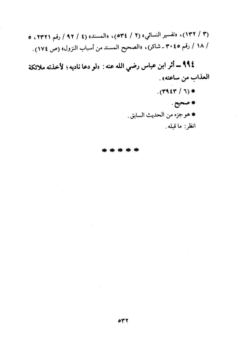 994 - أثر ابن عباس رضي الله عنه: ((لو دعا ناديه؛ لأخذته ملائكة العذاب من ساعته)) .