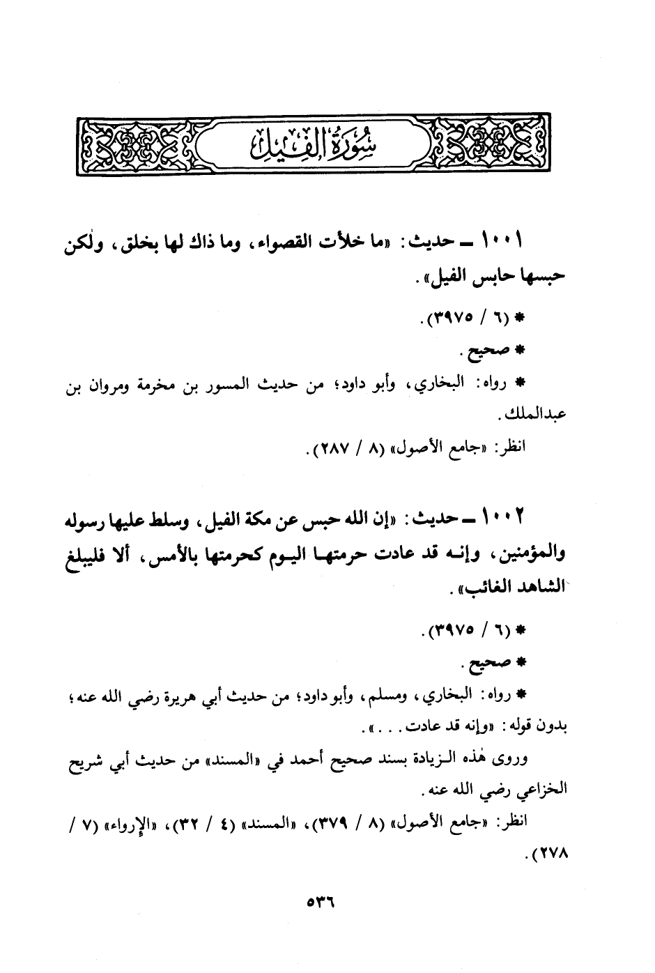 1001 - حديث: ((ما خلأت القصواء، وما ذاك لها بخلق، ولكن حبسها حابس الفيل)) .