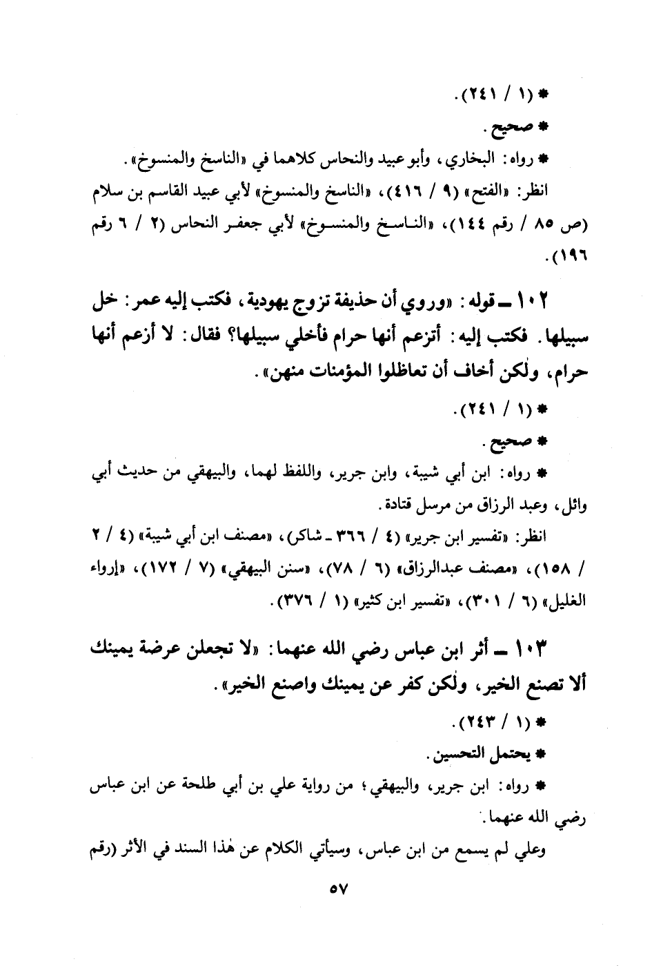 انظر: ((تفسير ابن جرير)) (4/366 - شاكر) ، ((مصنف ابن أبي شيبة)) (4/2/158) ((مصنف عبد الرزاق)) (6/78) ، ((سنن البيهقي)) (7/172) ، ((إرواء الغليل)) (6/301) ، ((تفسير ابن كثير)) (1/376) .