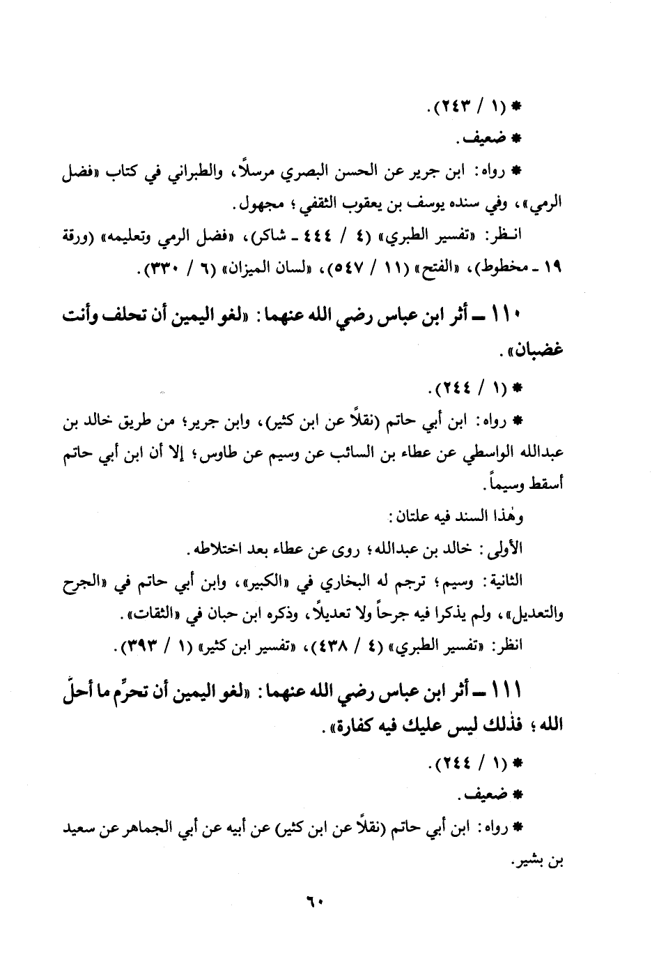 110 - أثر ابن عباس رضي الله عنهما: ((لغو اليمين أن تحلف وأنت غضبان)) .