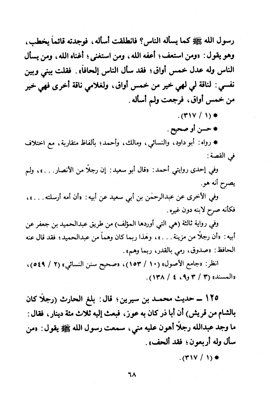 125 - حديث محمد بن سيرين؛ قال: بلغ الحارث (رجلاً كان بالشام من قريش) أن أبا ذر كان به عَوَزٌ، فبعث إليه ثلاث مئة دينار، فقال: ما وجد عبد الله رجلاً أهون عليه مني، سمعت رسول الله صلى الله عليه وسلم يقول: ((من سأل وله أربعون؛ فقد ألحف)) .