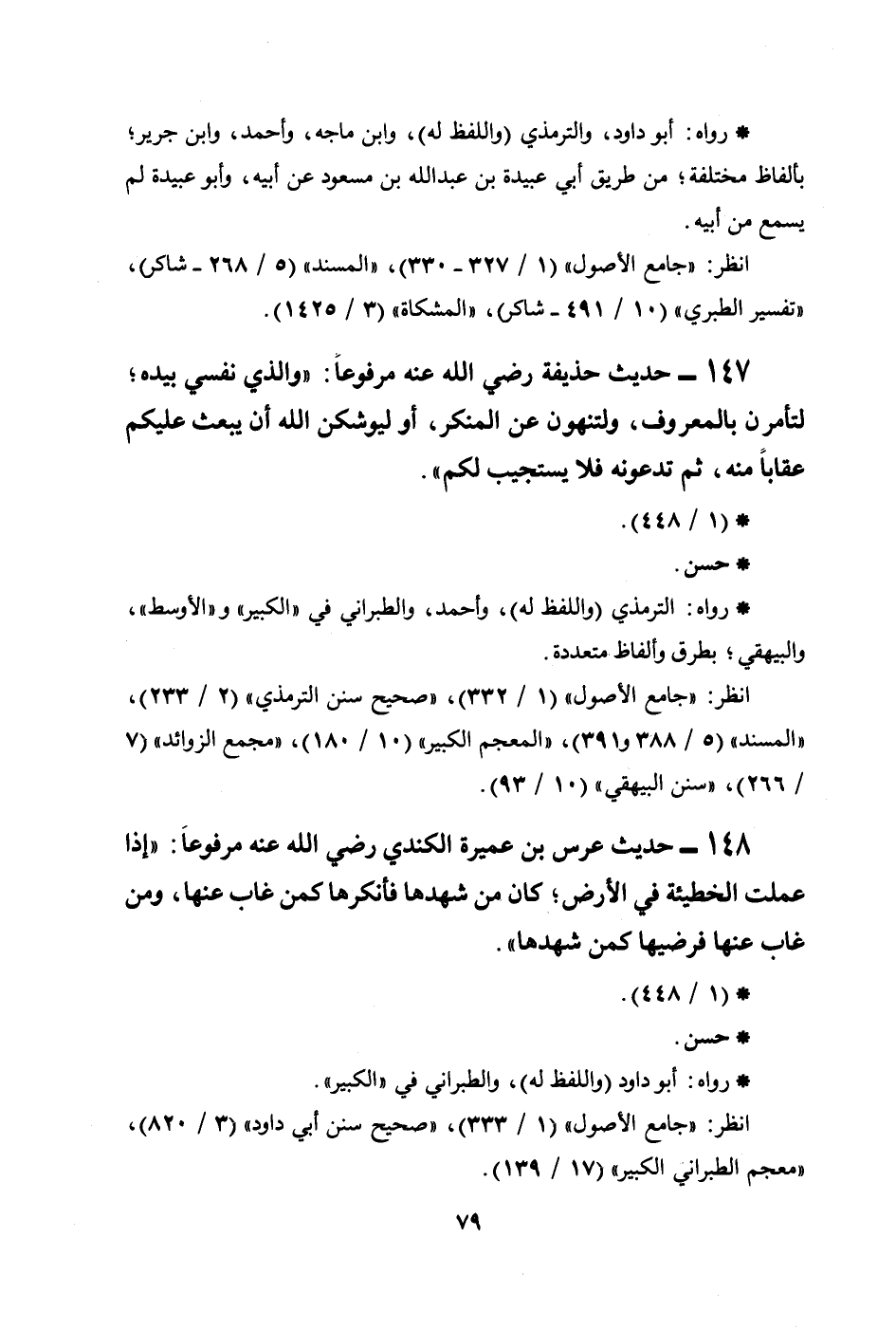 148 - حديث عرس بن عميرة الكندي رضي الله عنه مرفوعاً: ((إذا عُمِلَتْ الخطيئة في الأرض؛ كان من شهدها فأنكرها كمن غاب عنها، ومن غاب عنها فرضيها كمن شهدها)) .